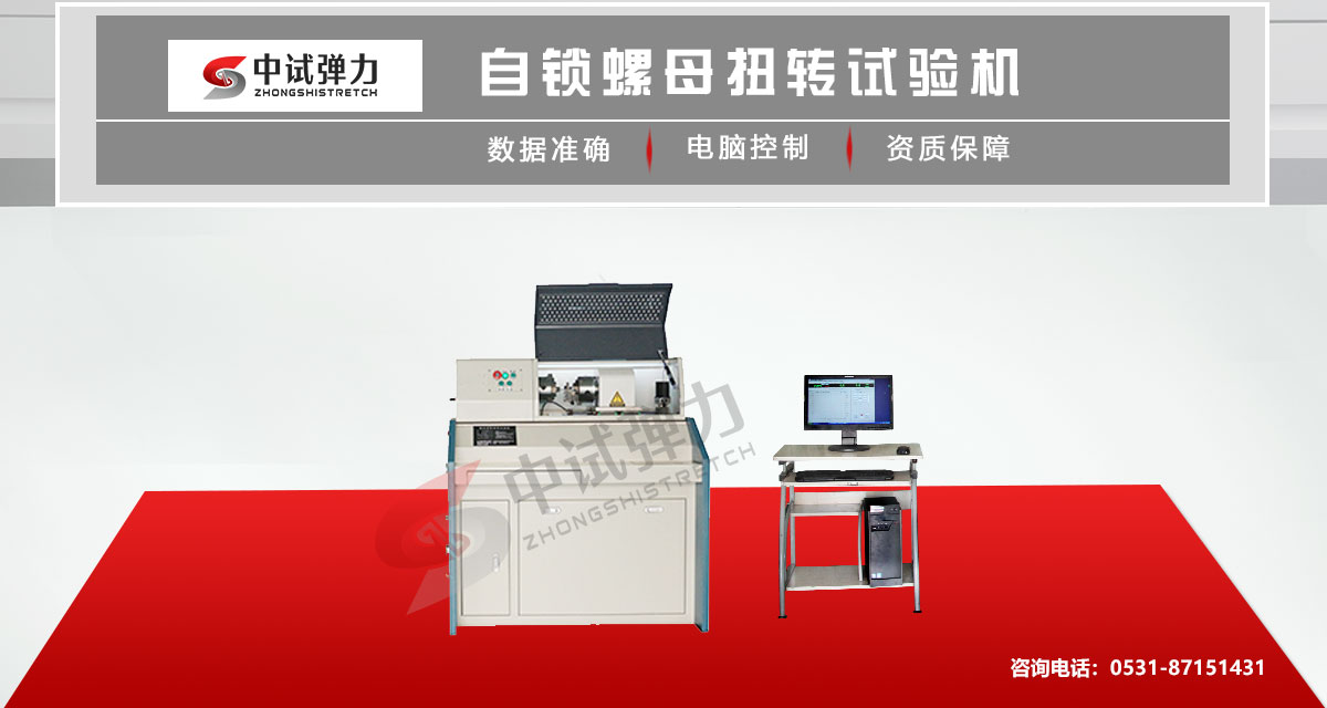 自锁螺母扭转试验机配置相应的夹具广泛用于四爪螺母、六角螺母、圆螺母、压铆螺母、尼龙螺母、六角压铆螺母、六角法兰螺母、拉铆螺母等扭转力学性能试验。螺母扭矩测试设备适用于质量监督、工业企业、机械制造、冶金、航天航空核工兵器、汽车、建工建材等试验领域及各理工类高等学校材料扭转的教学和材料扭转研究者进行科研;自锁螺母扭转试验机主要用于自锁螺母的锁紧性能试验,能满足GB943-88《自锁螺母技术条件》或HB5643-87《自锁螺母试验要求和方法》中自锁螺母锁紧性能试验方法的要求。加载速度由微机自动控制,采用进口交流伺服电机及其驱动器,以保证加载速度的稳定,均匀和无冲击调整。主要适用于厂矿企业,科研院所等自锁螺母的制造,使用部门对自锁螺母锁紧性能的检测。采用计算机自动控制,进口伺服电机加载,通过相应夹具联接安装,在试验机允许最大扭矩范围内,可进行自锁螺母、钢筋钢管、各种轴类零件各类材料试样的静态扭转试验。