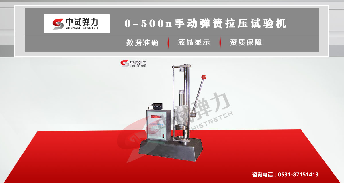 手动弹簧拉压试验机的设计借鉴了国内外的先进技术,外形美观,操作方便。手动加载通过中试控制器,经调速系统控制电机转动,经减速后通过压盘带动压簧实现上拉、下压,实现试验拉力、压力、数显屏幕显示,完成试样的拉力、变形、压力等力学性能试验。
