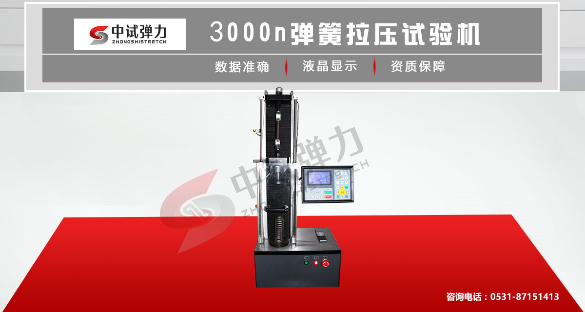 3000N弹簧拉伸试验机用来检测各种弹簧的拉伸、压缩、弯曲等力学试验,可测试弹簧的百分率变形比,最大拉伸力、拉伸应变、最大压缩力、压缩应力、延伸率等试验参数。可根据GB、ISO、DIN、ASTM、JIS等国际标准进行试验和提供数据,微机控制系统软件基于WINDOWS操作系统作为平台,可满足不同材料的试验测量需要,测控软件可按用户要求扩展功能。