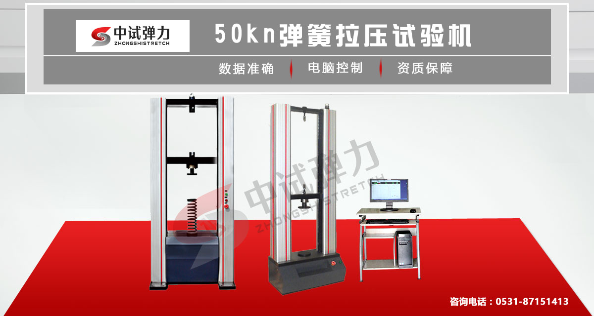 50KN微机控制弹簧拉压试验机是按照国家标准规定的弹簧试验规范而设计制造的专用测试设备。针对各类本机型量程范围内的拉伸弹簧、压缩弹簧、螺旋弹簧、圆柱弹簧、减震弹簧、汽车弹簧、中小碟簧、膜片弹簧、气弹簧、模具弹簧、异形弹簧、弹性元件等的拉力、压力、位移、刚度(弹性系数)K、弹性模量、回弹力等强度试验和分析。该弹簧试验机主要用于弹簧制造厂、电器制造厂、汽车生产厂、减震器生产厂、钢板弹簧生产厂、动力机械厂、大专院校及相关科研单位等范围。